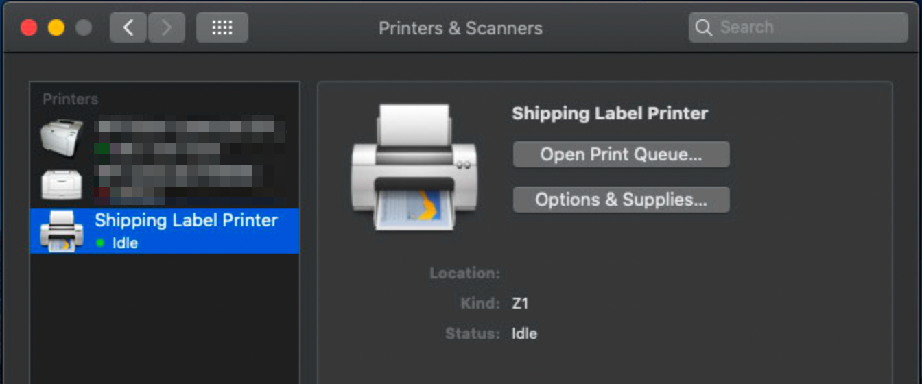 To get started, setup the Thermal Label Printer per the instructions and install the drivers as needed. In this screenshot, you'll see it set up in MacOS, but this works for Windows as well.